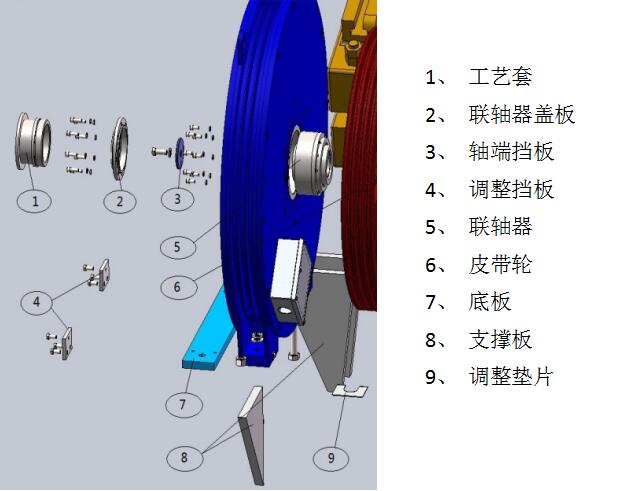 10、將調整擋板安裝到電機支撐底板上,調整電機軸向位置。